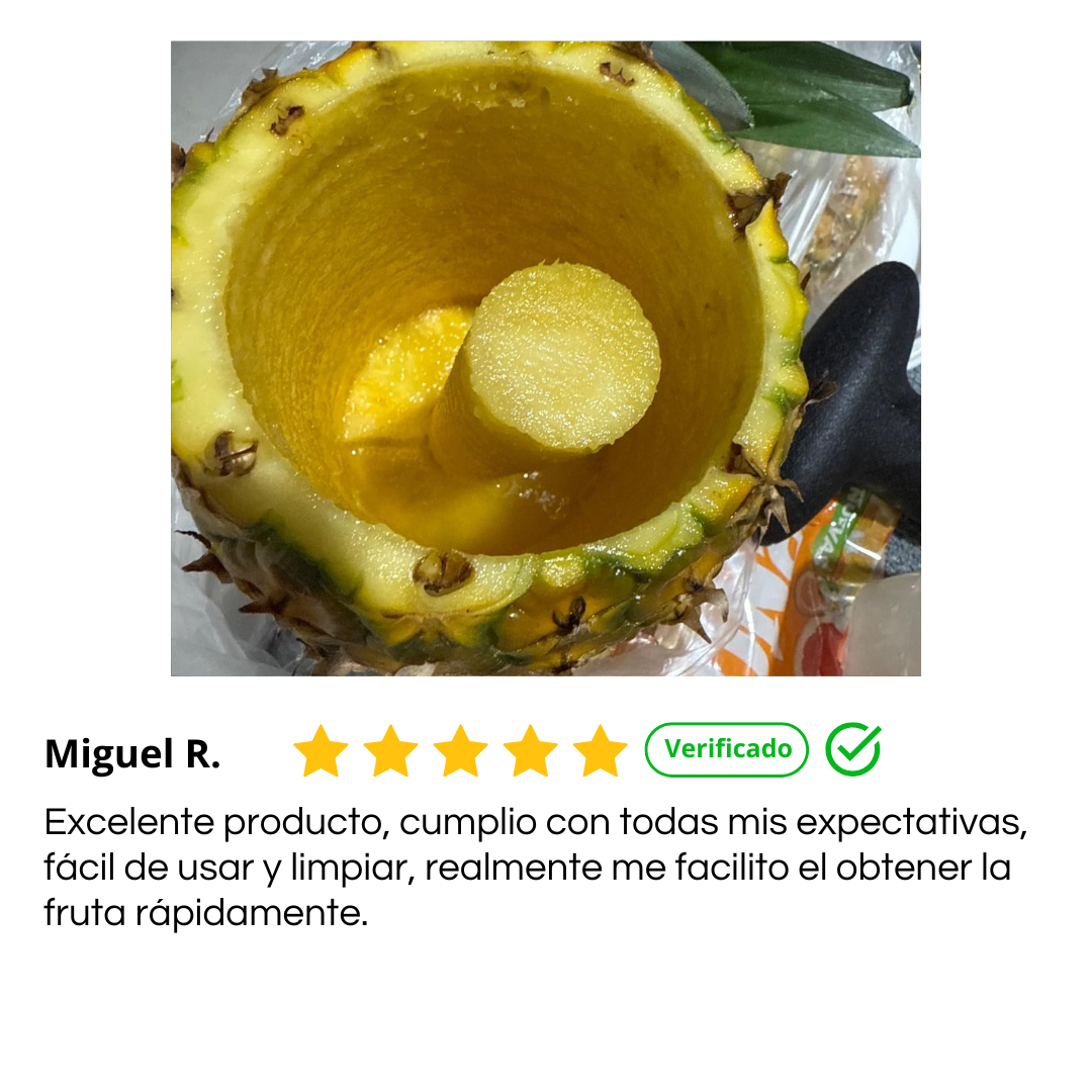 Nuestro Cortapiña© hace el trabajo por ti: fácil, rápido y sin complicaciones. Transforma la tediosa tarea de preparar una piña en un proceso limpio y eficiente, para que disfrutes de esta deliciosa fruta en cualquier momento.